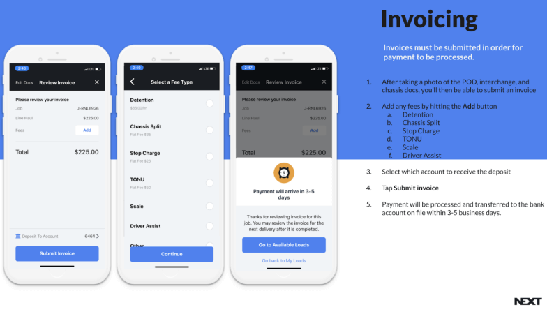 When you complete a delivery, submit the required PODs, Interchange, and Chassis Docs directly from your smartphone within 2 hours.
